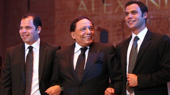 الفنان عادل إمام يتوسط أبناءه محمد ورامي - مهرجان الأفلام الدولي لدول البحر الأبيض المتوسط الإسكندرية 2008 - فرانس برس