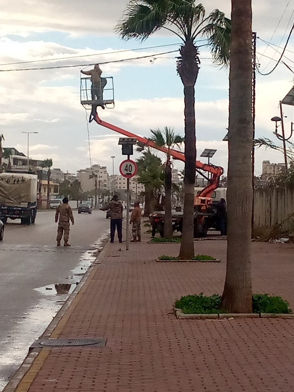 وقامت هذه الفرق أيضا برفع العوائق وأغصان الأشجار التي حملتها مياه الأمطار ، فضلا عن رفع عدد من الأسلاك والأشرطة الكهربائية التي تقطعت بفعل الرياح الشديدة، حيث قامت بإعادة وصلها بخطوط الإنارة بالطاقة الشمسية لتأمين الإضاءة في أجزاء من الكورنيش البحري وشوارع أخرى.