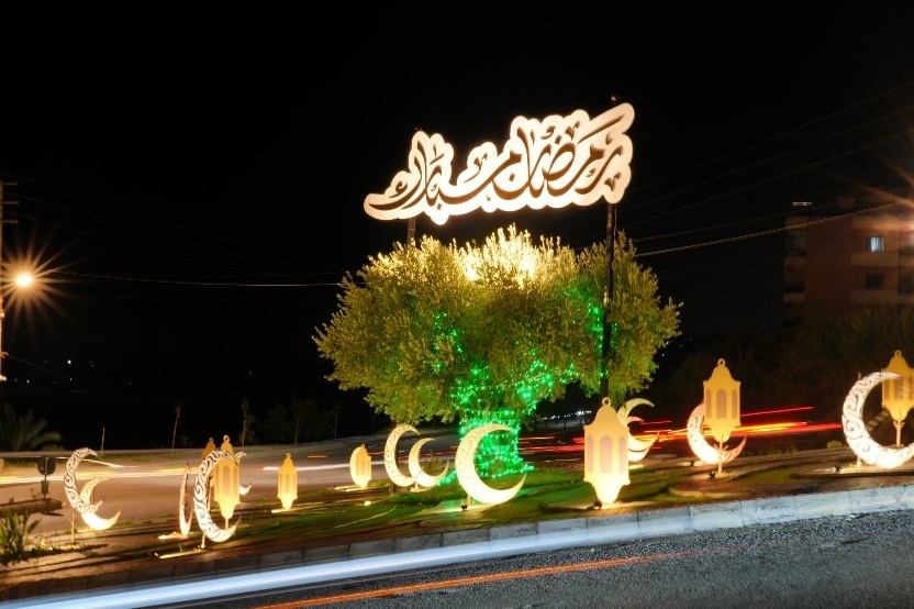 بلدية بقسطا تهنىء بقدوم شهر رمضان المبارك وتضيء مدخل الشرحبيل بمجسمات من وحي المناسبة