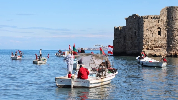 من المسيرة البحرية للصيادين في الذكرى الحادية والخمسين لاستشهاد المناضل الشهيد معروف سعد
