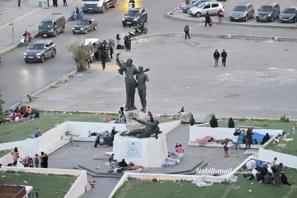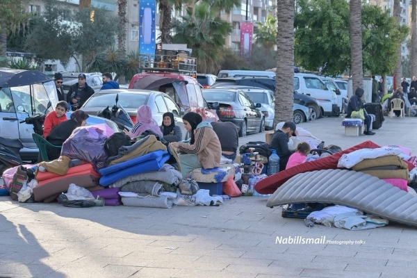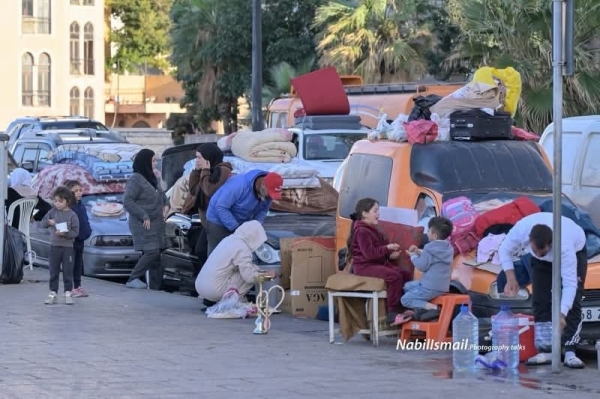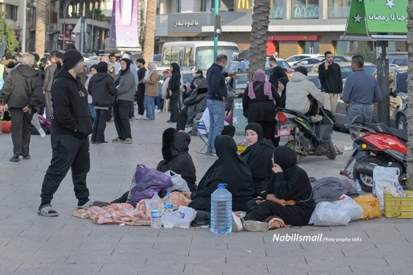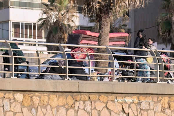 أطفال يجلسون قرب حقائبهم، وأمهات يحاولن أن يصنعن من لحظة الخوف حياة مؤقتة. بطانيات فوق أسطح السيارات، وأغراض قليلة اختُزلت فيها بيوت كاملة تركها أصحابها خلفهم.