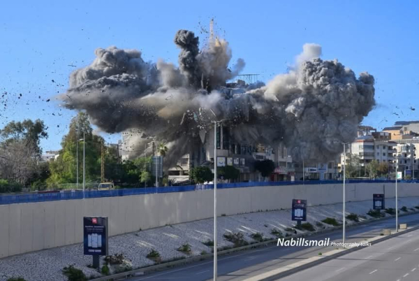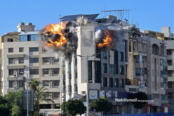 بعدسة ترصد الحدث، مشاهد متسلسلة توثّق لحظة إصابة مبنى بصاروخ غارة إس//.را/./ئي//لية على تخوم الضاحية الجنوبية