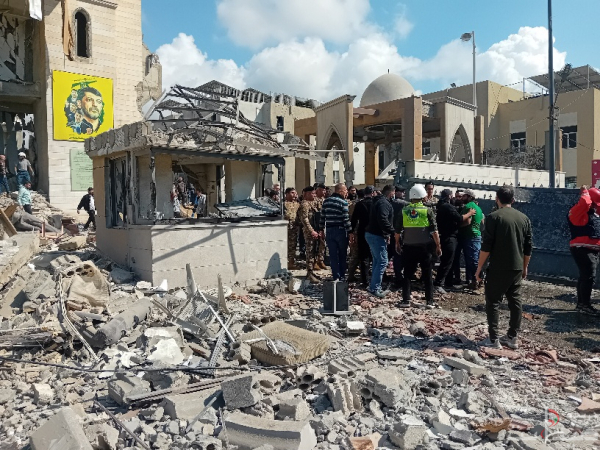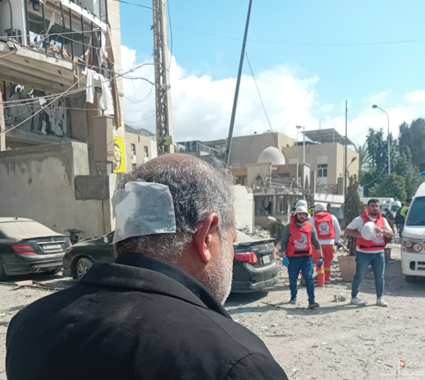 حزب الله هنا الشيخ صادق النابلسي في الغارة الإسرائيلية على مجمع فاطمة الزهراء.