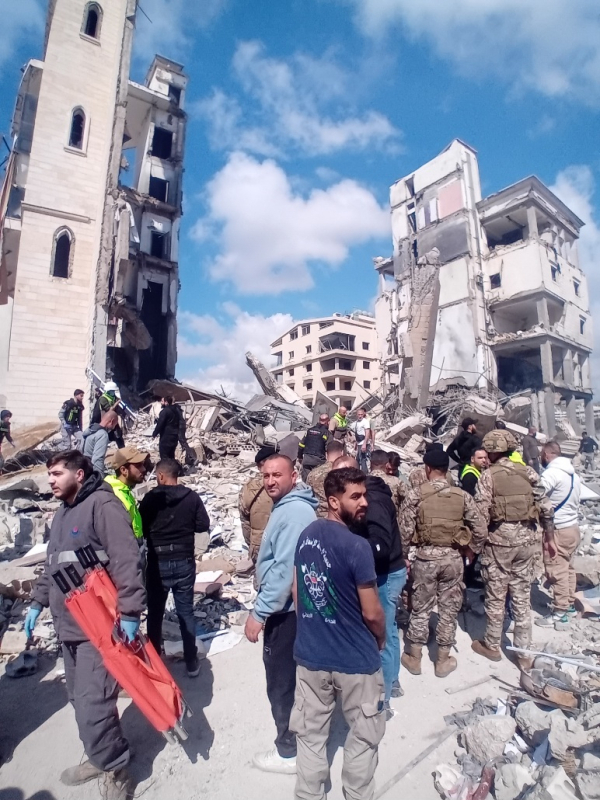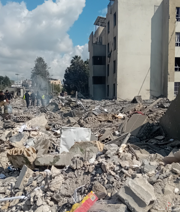 صور غارة و الدمار على مجمع الزهراء في مدينة صيدا و استهدف الشيخ صادق النابلسي